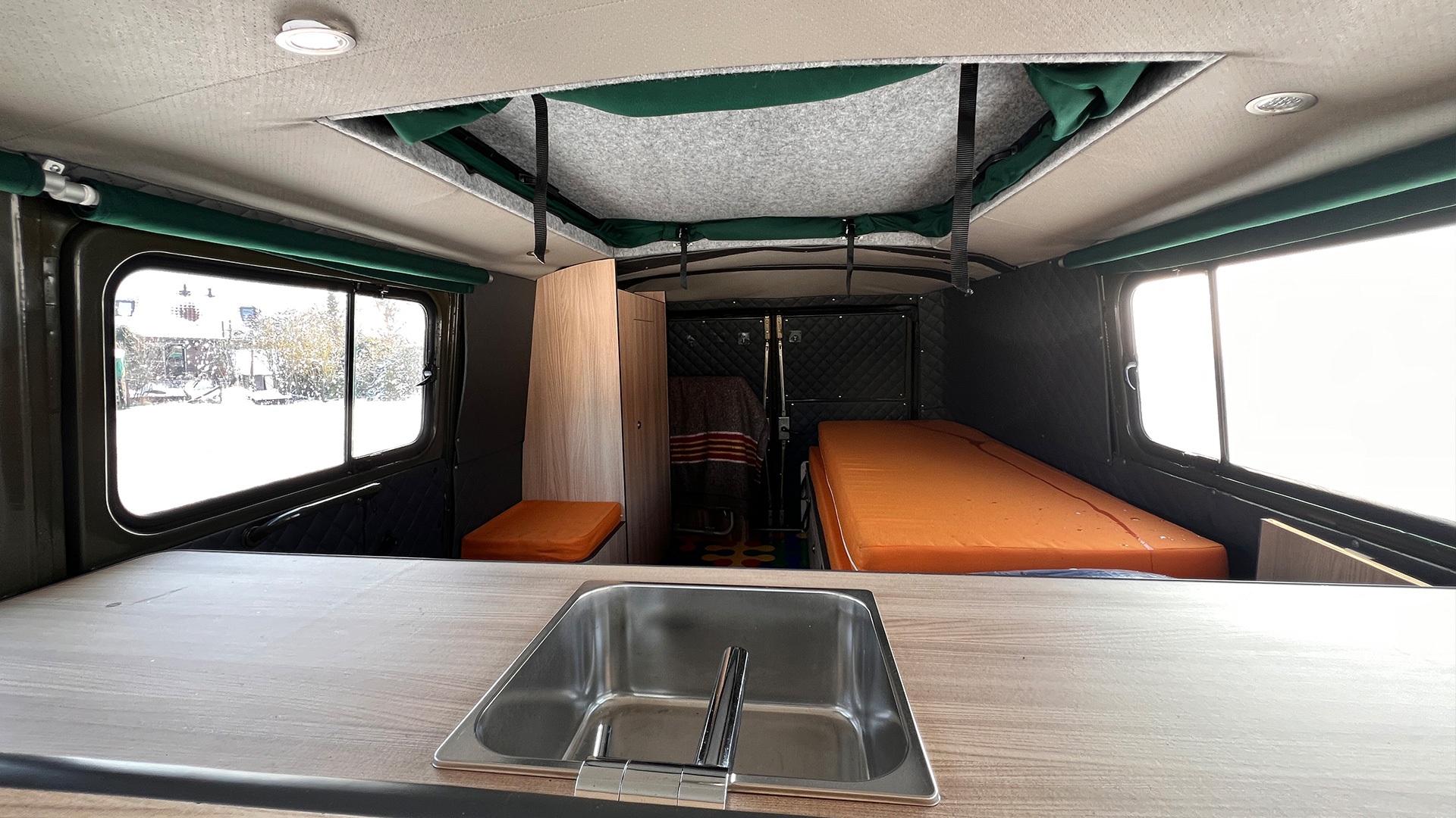 Wat deze Bukhanka bijzonder maakt, is dat hij technisch gezien vrijwel nieuw is. De basis is van 2018 en de camper is recent opgebouwd en volledig ingericht.